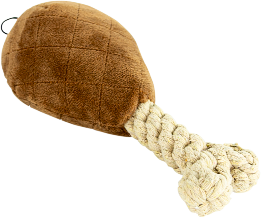 Treat your pup to this playful plush drumstick toy! With a quilted texture and a twisted rope “bone,” it’s perfect for chewing, tossing, and tugging. The built-in squeaker adds extra excitement to every play session.